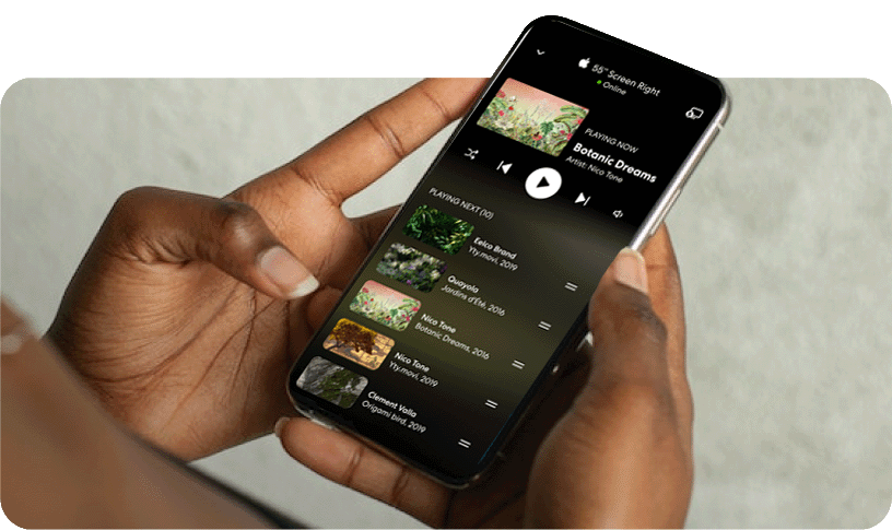 Easily. You can control and schedule everything — artworks, playlists — from any device using Niio’s web or mobile apps.