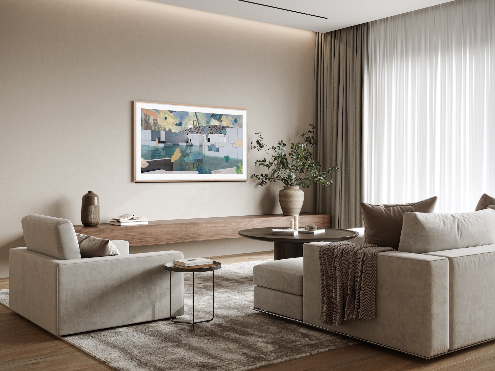 Bring the curated visual art & ambience loved by premium hospitality and real estate venues into your home.